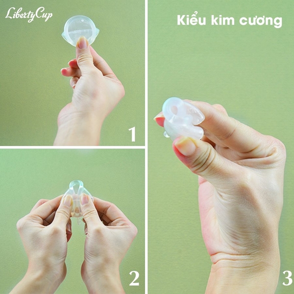 Có rất nhiều cách gấp cốc nguyệt san khác nhau: kiểu kim cương, số 7, chữ C, chữ V... Mỗi cách gấp đều có những ưu nhược điểm khách nhau